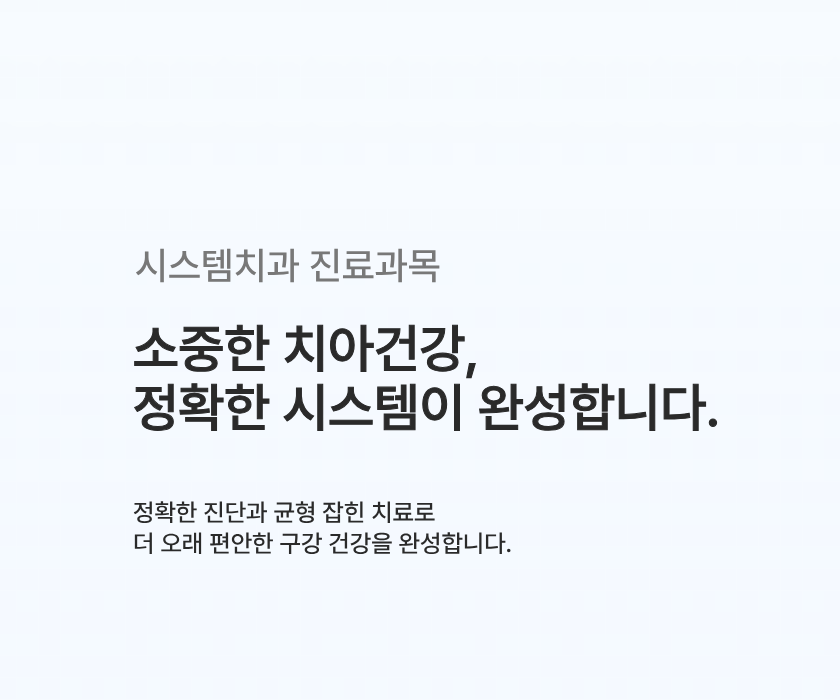 ※ 본원의 개인정보처리방침은 ‘시스템치과의원 개인정보처리방침’에 따릅니다.